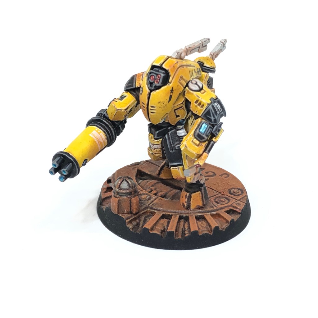 This post features my yellow T’au Kill Team, drawn together from Infiltration Cadre Shining Path. Since the last post, Fireblade Commander D’yini has assembled her best T’au for a mission to explore the derelict laboratorium complex deep in the rust-choked Mechanicus world of Xerica.