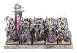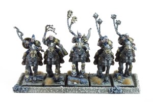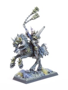 I already have another unit of Marauder Horsemen with javelins and axes so I wanted to converted this unit to make it stand out. The Hornblower got a head from the Chaos Lord on Manticore kit and a handflail from an Empire Flagellant. I think the bare heads gives this unit a real sense of personality (although considering all those flails swinging around they probably would have been better off with helmets!). Looking at the Age of Sigmar rules for these guys I’ll probably add a Damned Icon Bearer too at some point.